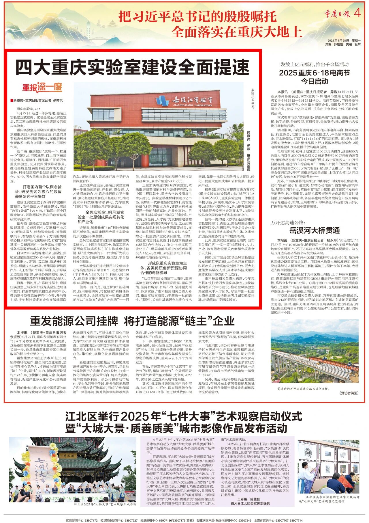 近年来,重庆按照“成熟一个、推进一个”原则,由市级统筹、自上而下布局建设金凤、嘉陵江、明月湖、广阳湾四大重庆实验室,充分发挥引领带动作用,推动高质量发展的科技支撑能力逐步提升,科技创新和产业创新走向深度融合。如今,四大重庆实验室建设全面提速。