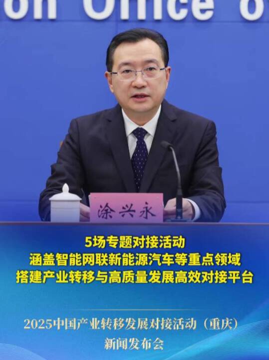 会上,市经济信息委副主任、新闻发言人涂兴永介绍,这5场专题对接活动,涵盖智能网联新能源汽车、新一代电子信息、先进材料、枢纽港产业园以及人才引育等重点领域。市经济信息委将通过政策解读、产业推介、技术分享、项目对接、项目签约等环节,全面展示重庆产业优势和发展机遇,促进创新链、产业链、资金链、人才链深度融合,为产业转移与高质量发展搭建高效对接平台。这5场对接活动中,有三个方面的情况值得关注。